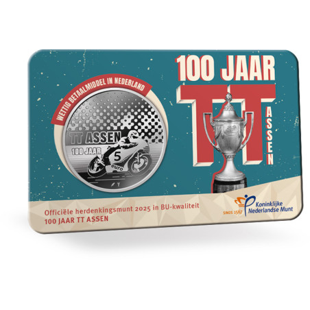 Het ontwerp van het TT Assen Vijfje symboliseert drie essentiële aspecten van de TT: de race, de mensen en de locatie. De motorcoureur op de munt vertegenwoordigt de snelheid en dynamiek van de race. De rasterpunten, verwerkt op de keerzijde, verwijzen naar het publiek en de verbondenheid van de mensen met het event. De strakke lijnen verbeelden het vlakke, Drentse landschap. Op de voorzijde is voor het portret van Zijne Majesteit koning Willem-Alexander, zelf een groot sportliefhebber, gebruikgemaakt van dezelfde rasterpunten als op de keerzijde.