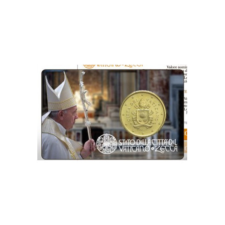 Vaticaanstad heeft 50 Cent 2022 BU Coincard nummer 13 uitgegeven. Op de hoogwaardige muntkaart staat de Heilige Vader afgebeeld. Op de munten staat het Pauselijk Wapen afgebeeld. Paus Franciscus I heeft er namelijk voor gekozen om, in tegenstelling tot zijn voorgangers, niet zijn beeltenis maar die van het Pauselijk Wapen op de munt te laten afbeelden.