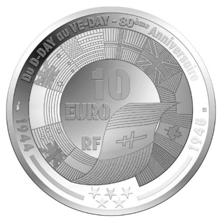 Eleven months after landing on the beaches of Normandy, Allied forces scattered across Europe celebrate the surrender of Nazi Germany. A historic day, “V-E DAY” (or Victory in Europe Day) symbolizes the end of nearly six years of conflict and the return of peace for millions of Europeans. 80 years after this decisive victory, Monnaie de Paris celebrates this historic event by paying a new tribute to the great Allied nations who fought for the liberation of France and Europe. Richard, private of the 6th Airborne, landed on the night of June 6th, 1944. After the Battle of Normandy, which culminated in the liberation of Calvados, the division was put to rest in Great Britain. In December 1944, the unit was rushed to Belgium to take part in the Battle of the Bulge, then crossed the Rhine as part of Operation Varsity. The reverse of this coin features all the Allied countries that officially took part in the Normandy landings, surrounded by the face value and the RF initials. Clockwise: France Libre, Netherlands, New Zealand, Poland, Australia, USA, Norway, UK, Czechoslovakia, Canada, Belgium