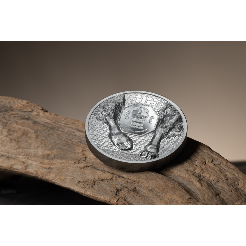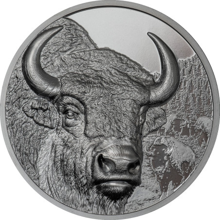 nieuwste uitgave in de "Wild Mongolië" serie - de Bizon. In aanvulling op de vorige uitgaven is de serie uitgebreid met deze twee prachtige edities in Black Proof en Copper. Bizons komen oorspronkelijk uit Noord-Amerika en Eurazië en zijn de grootste en sterkste wilde runderen denkbaar. Bekend om hun dichte vacht, kenmerkende schouderkromming en hun robuuste Bizons spelen een belangrijke ecologische rol bij het vormgeven van het landschap door hun graasgewoonten die leefgebieden creëren voor andere diersoorten. Een indrukwekkend dier komt tot leven door de combinatie van gedetailleerd ontwerp en een bewust gebruik van hoog reliëf en subtiele kleuren. Zie je de drie andere bizons op de achtergrond? Deze uitgave markeert het einde van de zeer succesvolle serie "Wild Mongolië" - een waardige afsluiter.