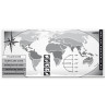 Op de andere kant zien we de wereldkaart met in verschillende grijstinten alle klimaatzones. Per zone is een groot zoogdier afgebeeld. Van boven naar beneden zijn dat de IJsbeer, Eland, Rund, Olifant en Kangoeroe.