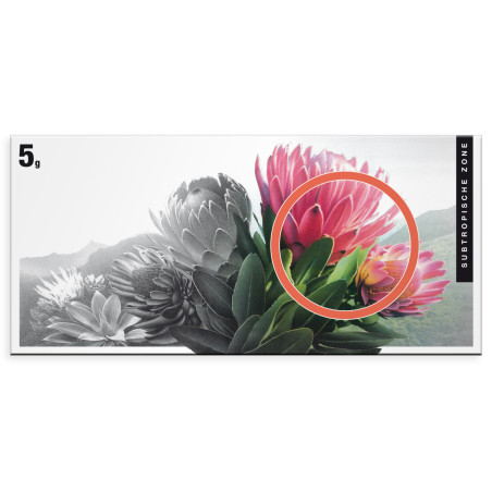 Met de unieke Flat Bar serie wordt aandacht besteed aan de bijzondere subtropische en tropische klimaatzones. De bijzondere uitgiften in deze serie zijn geslagen in 5 gram puur (.999) zilver. De Flat Bars zijn maar liefst 15 bij 7 cm groot en op elke voorzijde is, in prachtige kleuren, een dier of plant afgebeeld. Linksboven is het gewicht “5g” aangegeven en rechts staat de klimaatzone.