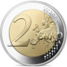 The obverse of this coin entitled Musée du Louvre depicts Perrault's Colonnade, the Eastern façade of the building overlooking the church of Saint-Germain-l'Auxerrois. This exterior façade is inserted of the museum's layout, in which the RF, the yeardate and the hallmarks are placed. In the back, the Louvre pyramid stands out from its structure, which covers the background of the coin. The reverse of the €2 coin features the face value and the shape of the European continent.