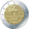 The obverse of this coin entitled Musée du Louvre depicts Perrault's Colonnade, the Eastern façade of the building overlooking the church of Saint-Germain-l'Auxerrois. This exterior façade is inserted of the museum's layout, in which the RF, the yeardate and the hallmarks are placed. In the back, the Louvre pyramid stands out from its structure, which covers the background of the coin. The reverse of the €2 coin features the face value and the shape of the European continent.