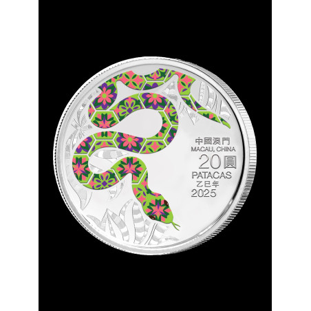 De Monetaire Autoriteit van Macau presenteert met trots de Macau Jaar van de Slang munten, exclusief geslagen door The Singapore Mint. De Macau Jaar van de Slang munten zijn de 6e emissie van de Macau Lunar Coin Series 2020-2031 die de kenmerken van Macau's World Heritage Sites laat zien en de unieke mix van Macau's Chinese en Portugese cultuur laat zien door middel van smaakvolle ontwerpelementen en innovatief vakmanschap. Op de voorzijde van de munt is de sierlijke glibberige slang afgebeeld met glanzende smaragdgroene tegels met een Portugees patroon. Op de achtergrond zijn lotussen afgebeeld, de stadsbloem van Macau, wat het ontwerp van de munt nog ingewikkelder maakt. De begeleidende teksten zijn ook zorgvuldig gerangschikt zodat ze lijken op de kaart van het schiereiland Macau. Op de achterkant van de munt is het Lilau-plein afgebeeld, dat op ingewikkelde wijze is geslagen met een hoog-reliëf munttechniek. In het verleden was het grondwater van Lilau de belangrijkste bron van natuurlijk bronwater in Macau. Lilau Square was ook een van de vroegste Portugese woonwijken in Macau. Dit gebied is gebouwd langs de glooiende berghelling en omvat Portugese architectuur langs de Lilau Alley. Het ontwerp van de munt, gepresenteerd vanuit een bottom-up perspectief, heeft de Lilau fontein als belangrijkste element, samen met een vintage straatlantaarn. De appartementen met louvre-ramen en rode dakpannen stralen een duidelijke Europese charme uit.