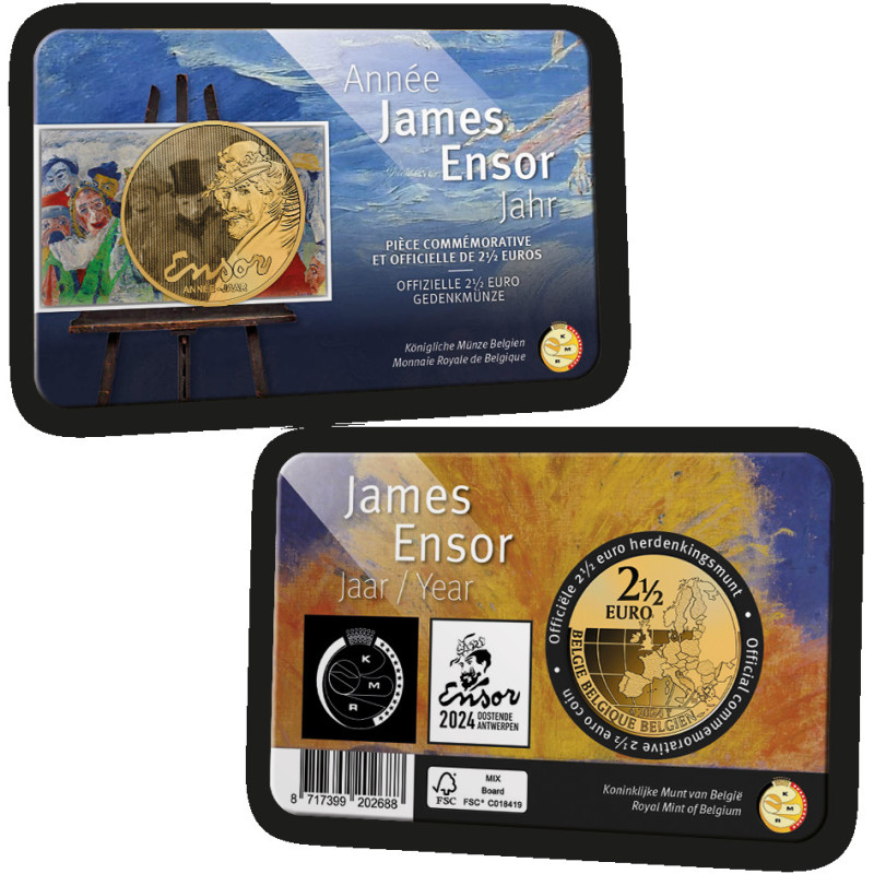 Van The Oyster Eater tot The Intrige: hoe bekender en begeerlijker/waardevoller het werk, hoe zeldzamer de NFT. Ensors werken komen tot leven met een 'glitch' of huivering! NFT: staat voor Non-Fungible Token. Een NFT is een digitaal certificaat van eigendom, opgeslagen op een blockchain, dat verwijst naar een digitaal mediaobject. Aan 2 x 5.000 muntkaarten 2 ½ euro James Ensor Year 2024 zijn QR-codes toegevoegd waarmee een NFT kan worden geclaimd. Er zit dus een exclusief extraatje bij de munten! Je ontvangt de muntkaart in een speciaal mapje met stap-voor-stap uitleg.