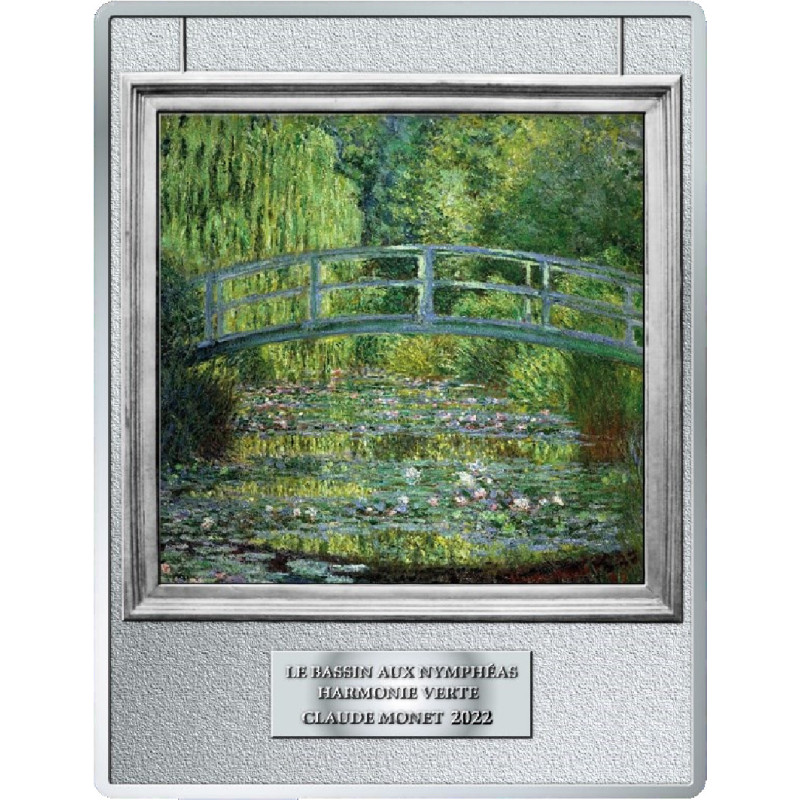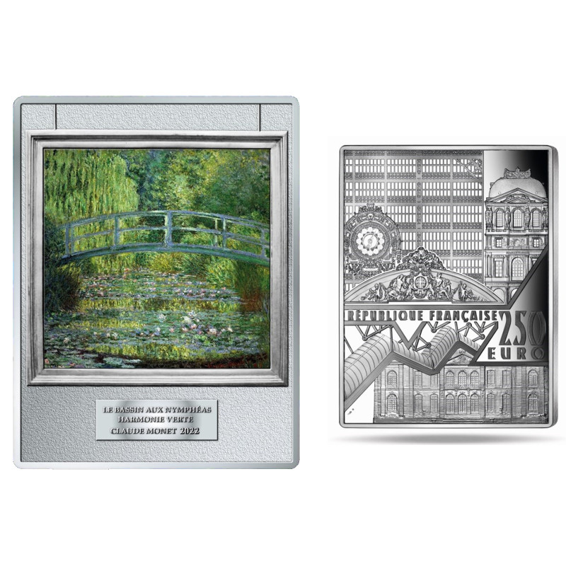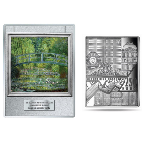 Deze unieke 250 Euro Herdenkingsmunt uit Frankrijk is een schitterend eerbetoon aan één van de bekendste meesterwerken van de Franse kunstschilder Claude Monet: De Waterlelievijver met Japanse Brug. De waardevolle munt is vervaardigd van 0,5 kilogram zilver en geslagen in de allerhoogste muntkwaliteit: Proof.
