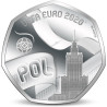 Op deze munt staat een wapperende vlag van Polen en de afkorting POL. We zien ook duidelijk het Paleis van Cultuur en Wetenschap uit Warschau.