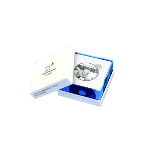 Deze zilveren munt, waarop de Olympische sport 'Shorttrack' is weergegeven, is geslagen in de hoogst mogelijke muntkwaliteit: Proof. De officiële herdenkingsmunt wordt geleverd in een hoogwaardige presentatiecassette met het logo van de Olympische Winterspelen 2018.