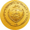 Deze kleine gouden munt toont een Aureus met de gelauwerde kop van keizer Augustus (63 v.Chr. - 14 n.Chr.). Op de voorkant zien we het wapenschild van Palau en de nominale waarde "1 $" (USD).