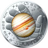 Op de voorzijde is Jupiter afgebeeld in de open palm van een astronaut. Op de achtergrond is een hemel vol sterren. Dit ontwerp geeft de toeschouwer de indruk in de helm van de astronaut te zitten, die erin geslaagd is de planeet vast te pakken om hem te bewonderen. die erin geslaagd is de planeet vast te pakken om hem te bewonderen. Langs de rand van de munt staan de woorden '139.822 km' en '9h55', die de diameter en rotatietijd van Jupiter voorstellen. Op de achterkant is de nominale waarde omringd door twee takken, een van eikenhout en de andere van laurier, die doen denken aan het eurosymbool. De hele achterkant wordt omlijst door 'République Française' en een reeks lijnen die de Zeshoek voorstellen. de zeshoek. De munt is verpakt in een cardlette met ontwerpen van Romain Hugault. Binnenin staan wetenschappelijke details over de planeet en op de achterkant een tekst van Thomas Pesquet.