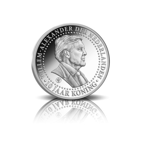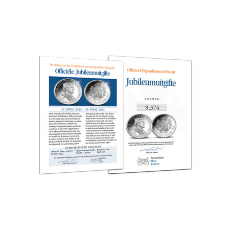 Op 30 april 2023 is het precies 10 jaar geleden dat de troonswisseling plaatsvond. Om het 10-jarig koningschap van Koning Willem-Alexander te vieren, is de officiële Jubileumuitgifte uitgegeven. De zwaar verzilverde herdenkingsuitgifte is geslagen in de allerhoogste kwaliteit, Proof, en de oplage is strikt gelimiteerd tot slechts 10.000 exemplaren. Met dit Nationale Cadeau is het jubileum van Zijne Majesteit extra luister bijgezet.