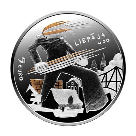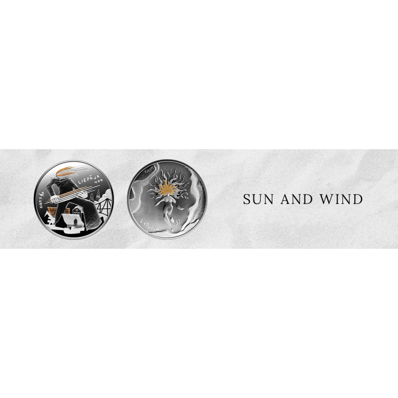 Liepaja, een klein vissersdorpje in Liva, is uitgegroeid tot de op twee na grootste stad van Letland en viert dit jaar haar 400-jarig bestaan. Ter gelegenheid hiervan heeft kunstenaar Krišs Salmanis een munt ontworpen die de contrasten van de stad combineert en symbolisch weergeeft in de afbeeldingen van de Zon en de Wind. In hun evenwicht wordt de ziel van de stad gevormd.